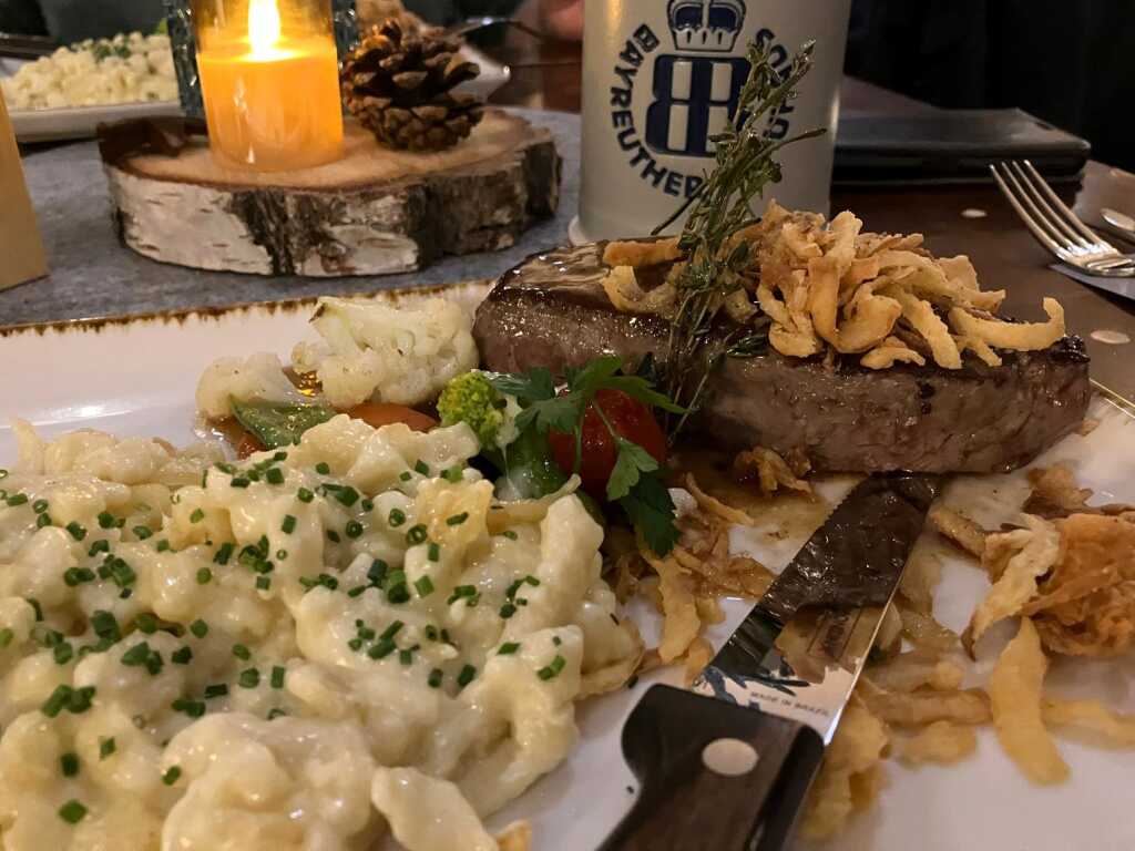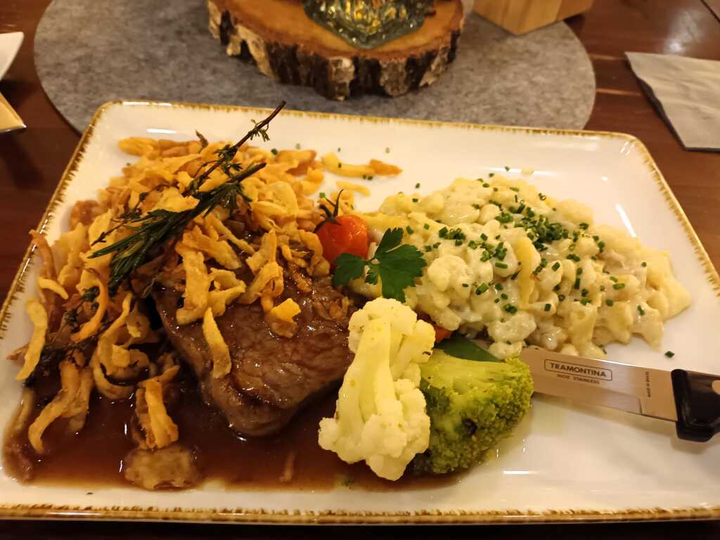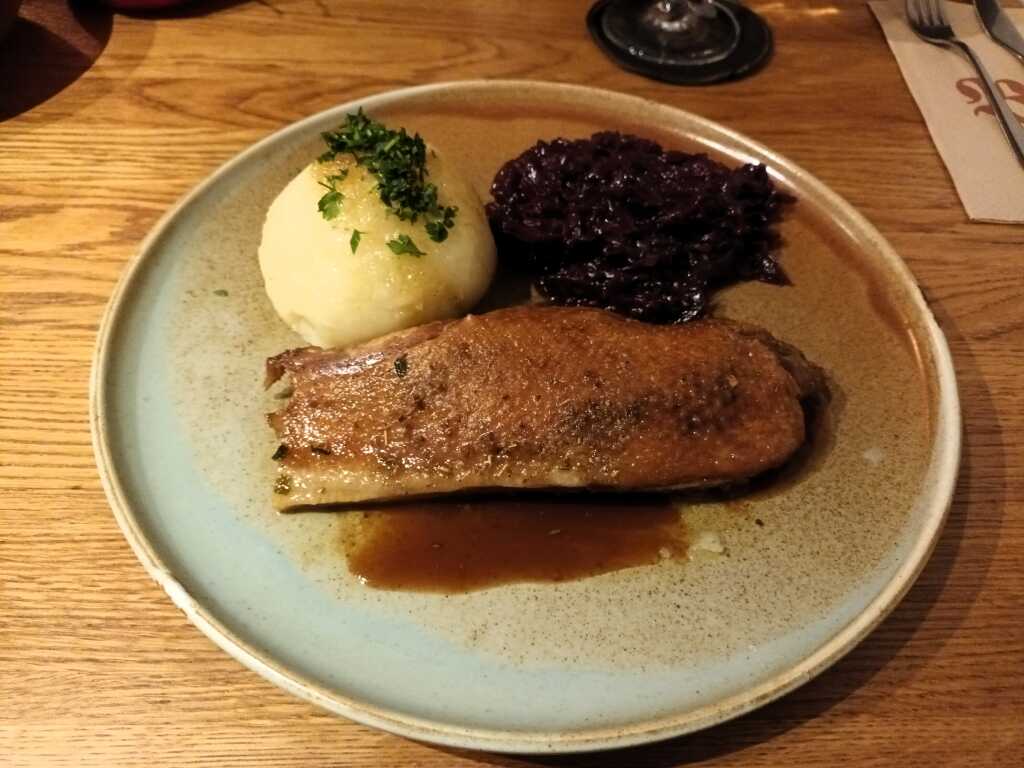 Gänsebrust - zart und knusprig - die aromatische Jus wurde in einer Sauciere serviert - Rotkohl würzig - Kloß schön fluffig - für 29,90 € überraschend gut