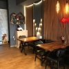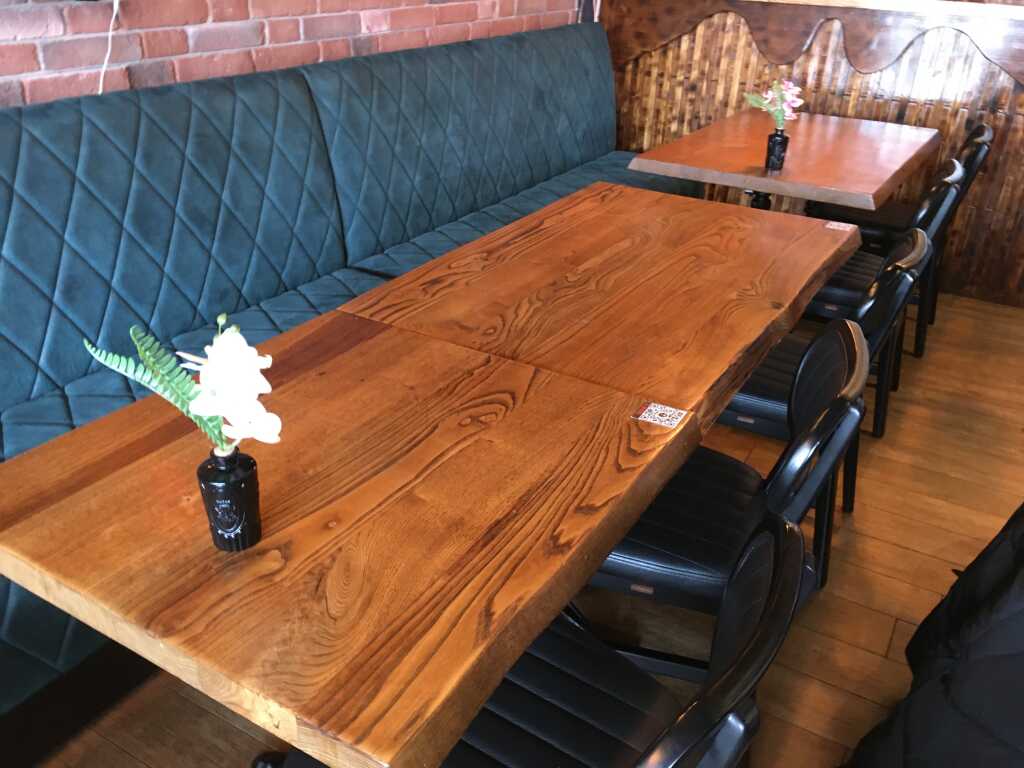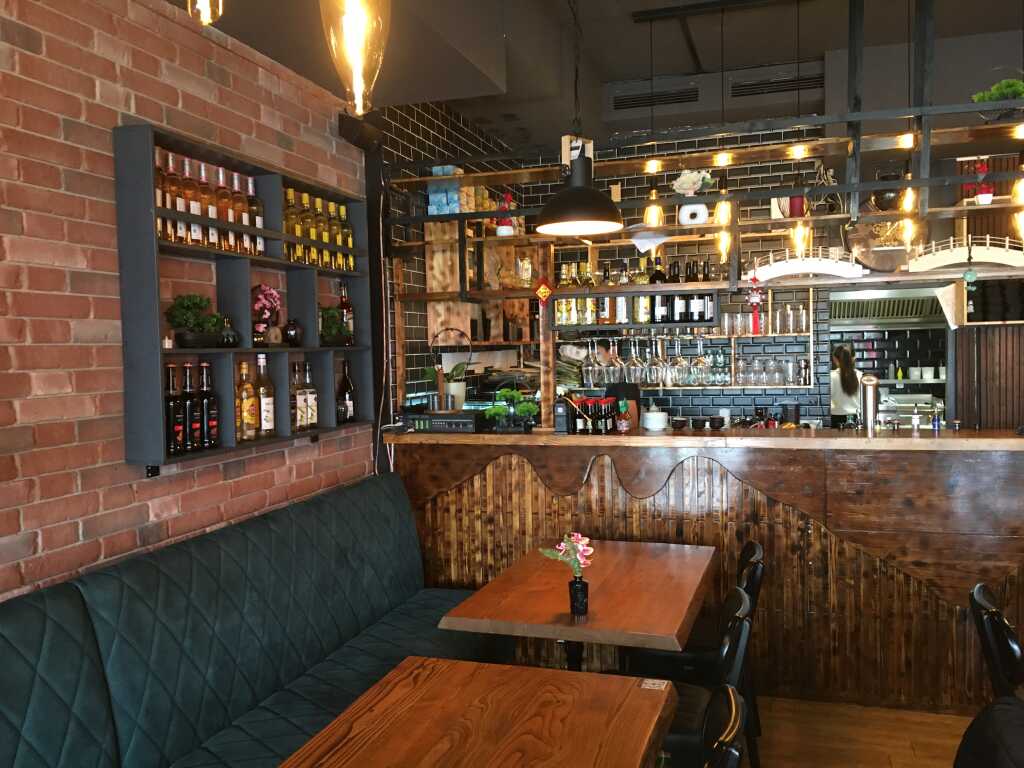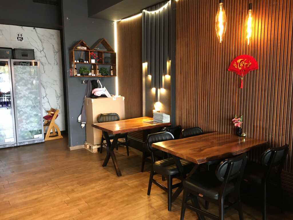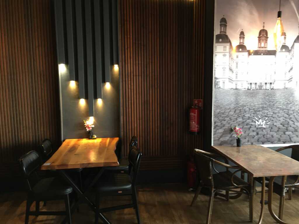 Das Lokal hat einen Außenbereich (Terrasse) und innen stehen die Tische locker verteilt im Raum. Sie werden wohl stets zu gewünschten Plätzen zusammengestellt.